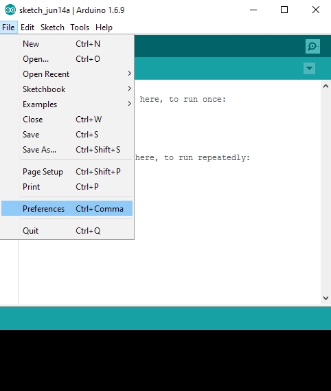 จะขึ้นหน้าต่าง Preferences ให้สังเกตุในช่อง Additional Board Manger URLs: หน้าต่าง Preferences